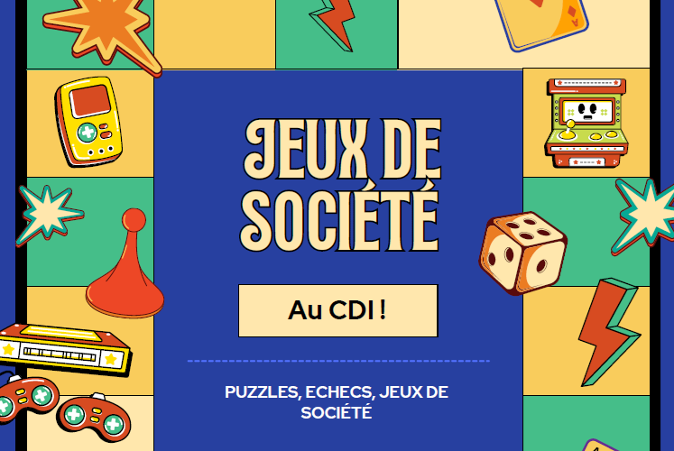 Le CDI vous propose le vendredi de 13h à 14h30 et le mercredi de 12h à 13h une sélections de jeux (codename, dixit, skyjo). Ne pouvant pas accueillir un trop grand nombre de joueurs, une limite a été fixé aux 20 premiers arrivés.